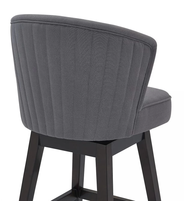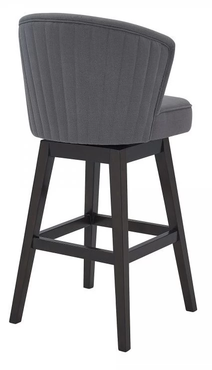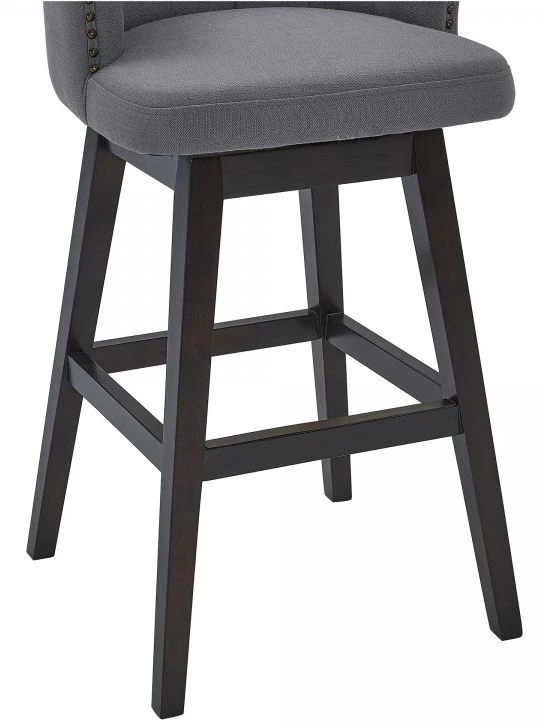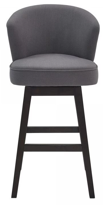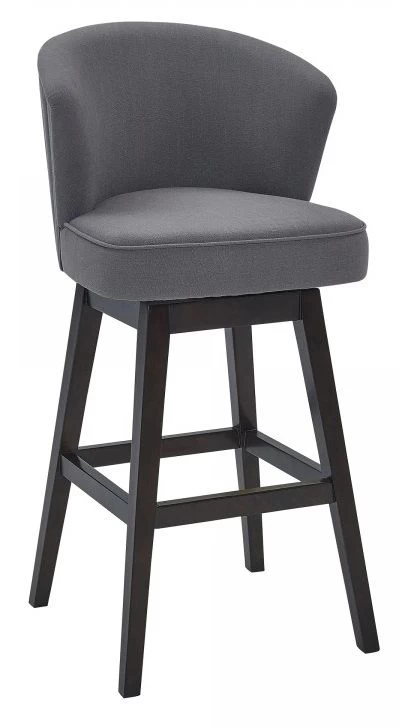 Brandy Contemporary Barstool in Espresso Wood Finish and Grey Fabric.