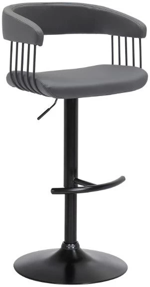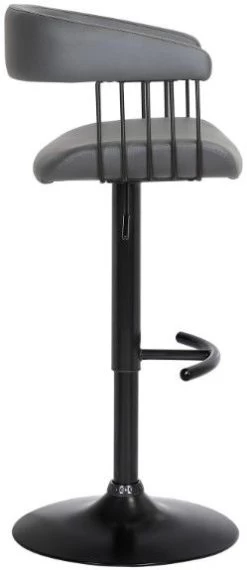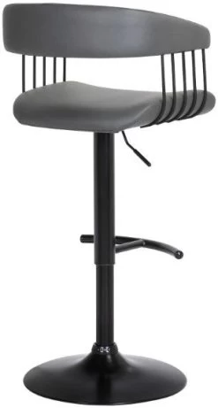 The counter stool features a rich blend of materials and finishes to make a plush and modern statement in your eat-in kitchen, bars, or lounge. With a generously cushioned backrest and seat, our contemporary barstool provides a stylish and comfortable solution for entertaining in a home or apartment. It is upholstered in high performance fabric or faux leather which does not crack or fade easily; it is both stain and UV resistant for easy maintenance and longevity. Our bar stool is expertly crafted from metal and engineered wood to provide a durable and multifunction seating option that can work efficiently from a kitchen to a home office. Featuring a built-in footrest and smooth lifting mechanism, our adjustable counter stool effortlessly caters to a kitchen island, pub table, home bar, or adjustable desk. It includes a wonderful 360-degree swivel function with a smooth gliding system to make island chats, meals, and conversation a lot more enjoyable. The Calista adjustable bar or counter stool easily incorporates into any home and is available in your choice of black metal finish with your choice of gray faux leather, or light gray or blue fabric upholstery, or a black and Golden Bronze metal finish with your choice of black or gray faux leather upholstery.