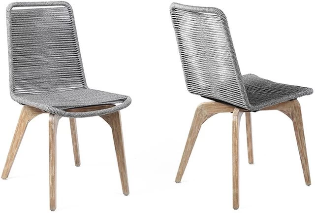 Island Outdoor Patio Dining Chairs in Silver Rope and Dark Finish – Set of 2