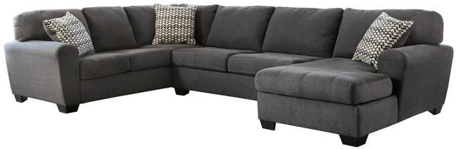 Includes right-arm facing corner chaise, armless loveseat and left-arm facing sofa