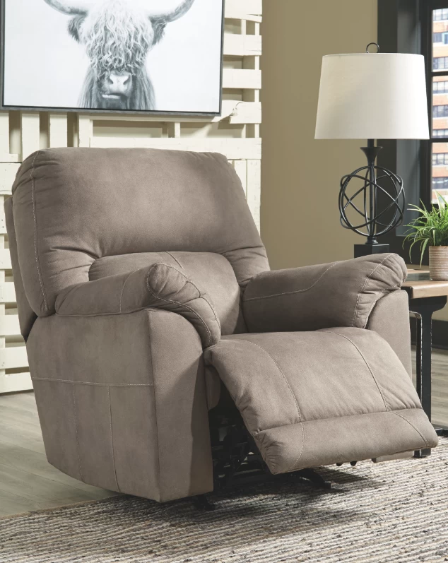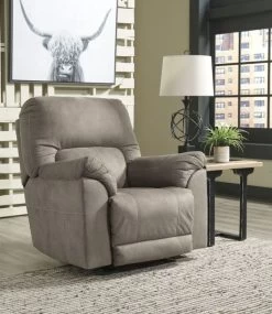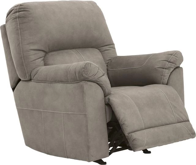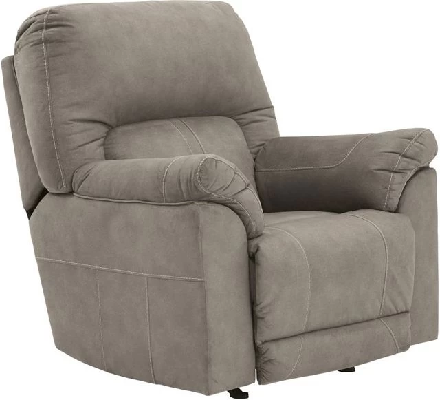 Strike a balance between the indulgent comfort you crave and the cool aesthetic you long for with this rocker recliner. Offering the cool look of weathered leather, the feel-good slate-tone upholstery takes neutral to new heights. Simply chic divided back tailoring and jumbo stitching are among the finer details that make all the difference.