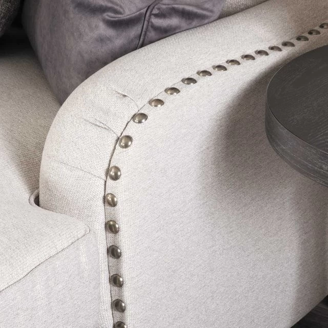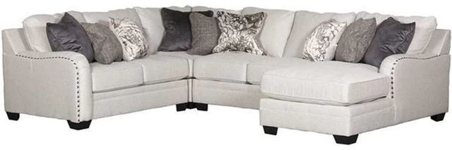 With an abundance of seating options this sectional is a perfect addition to the living room of an avid entertainer. Its comfortable, plush cushions and large toss pillows ensure that you and your guests can sit back, chat, and relax for hours on end. Details such as the nailhead trim along the arms of this four-piece sectional help to create its inviting casual style. The chaise provides a space perfect for curling up to read a good book or for taking a quick catnap.