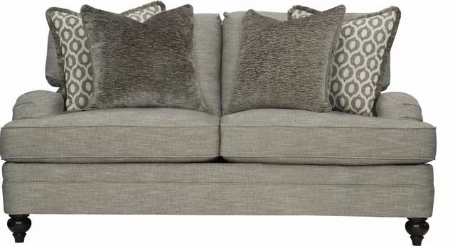 Enjoy thick cushions and the soft look of our Tarleton furniture line in a loveseat size. This smaller sofa creates relaxing comfort for any sized space while the wide cushions and low arms give you plenty of room to socialize. The wave-shaped arm and pitched back create an inviting profile. Seams on the front of the arms help showcase the richness of the upholstery.