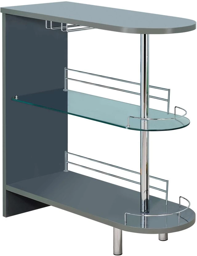 Included guardrails help to secure items. Shiny metallic graces the support pole and tapered legs, creating a mid-century modern-inspired look.