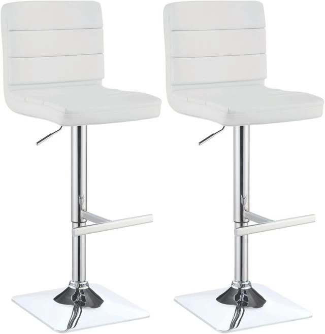 White upholstery over a chrome finish base energizes and flatters. Adjustable height settings make sure your seating experience is pleasant.