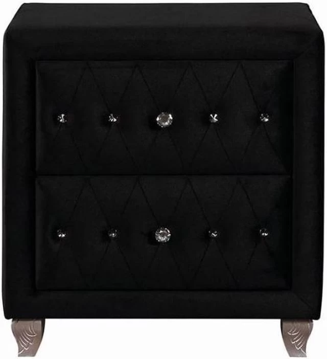 Discover something new to bedroom furnishing with the Deanna collection from CoasterEssence. All-around velvet upholstery and tufting line every corner in soft and stylish detail. The abundance of buttons and crystal hardware share the spotlight for a luxurious, Hollywood regency feel. Glam up your bed space with the elegant and alluring design of this collection.