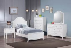 A dream in pure white, the Dominique collection from CoasterEssence provides timeless style to complement every stage and phase of your child’s life. Crafted with gentle curves and silver-tone hardware for a touch of cute, this collection from Coaster® is a practical sleep and organization solution everyone will appreciate.