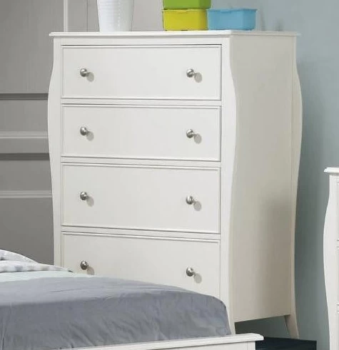 A dream in pure white, the Dominique collection from CoasterEssence provides timeless style to complement every stage and phase of your child’s life. Crafted with gentle curves and silver-tone hardware for a touch of cute, this collection from Coaster® is a practical sleep and organization solution everyone will appreciate.