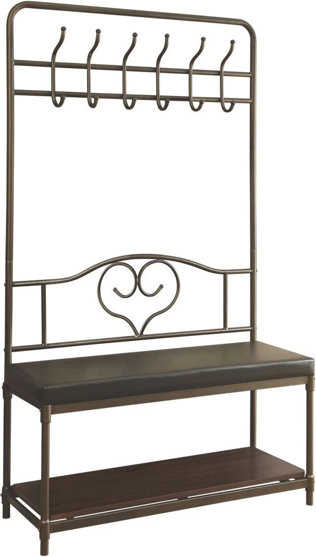 Hall tree in dark walnut finish with metal frame in dark bronze finish celebrates modern style