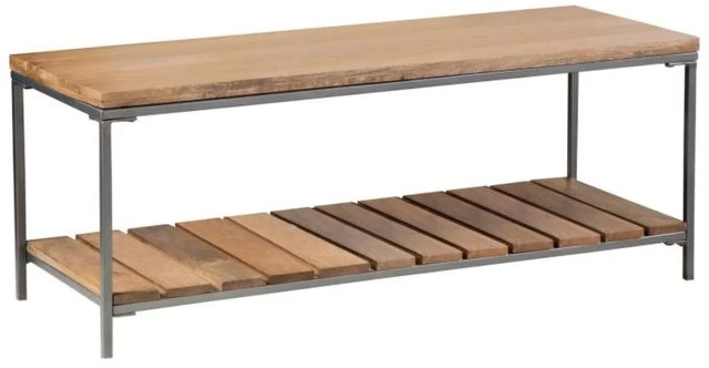 Look to this accent bench to provide an industrial element in your home. This piece boasts an expansive seating area with a natural wood finish. A gunmetal frame supports the bench while adding aesthetic appeal. Below, you’ll find an open shelf in a plank style design. Use it to store your favorite footwear or leave it open for an airy feel.