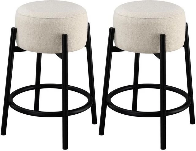 Contemporary stools with casual sleek lines and a thick pouf-like cushion wrapped in white upholstery