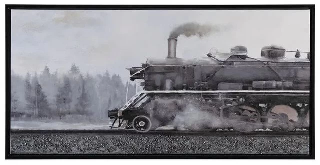 The faded trees in the background add to the rustic charm, creating a serene ambiance that transports you to a simpler time. The 3D rock embellishments for the gravel give the painting a unique texture and character that sets it apart from other artworks. Crafted with utmost care and attention to detail, this painting is finished with a sleek black gallery frame, enhancing the overall elegance of the piece. The frame perfectly complements the painting’s rustic charm, making it an ideal addition to any room.