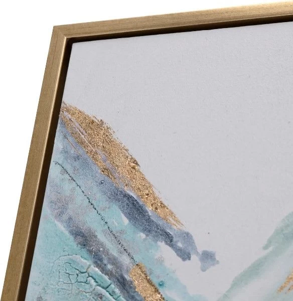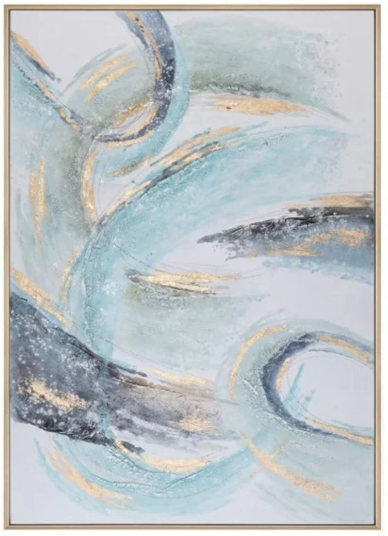 The heavy texture on this canvas adds depth and dimension to the painting, making it truly unique and captivating. Additionally, the gold foil embellishments bring a touch of luxury and sophistication, creating a striking contrast against the bold colors of the canvas. This oversized canvas painting comes with a gorgeous gold gallery frame that perfectly complements the color scheme and enhances the overall aesthetic of the piece. Measuring great over the sofa size, it will make a bold statement in any living room or bedroom.