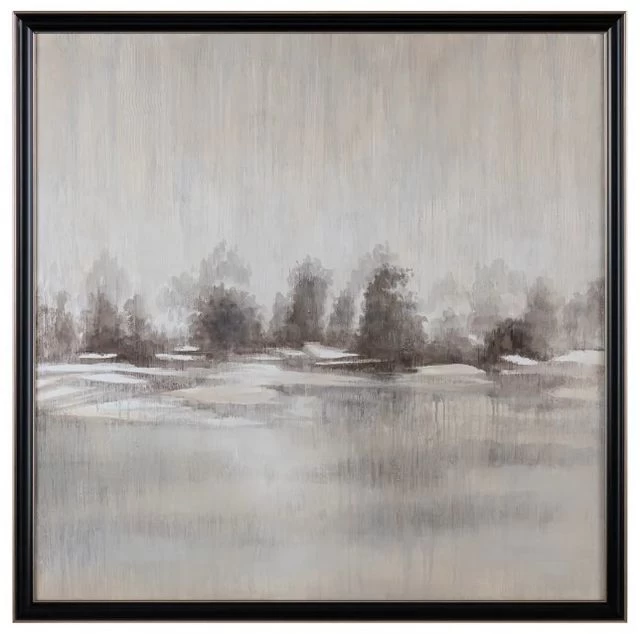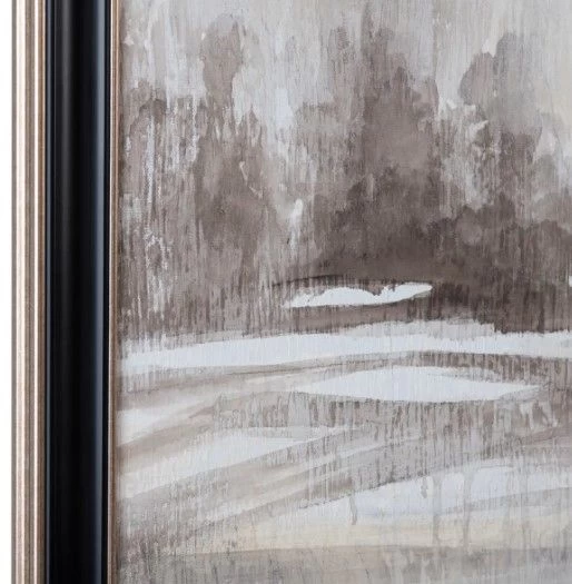 Crafted on high-quality linen material, this painting boasts a grey color scheme that creates a calming and soothing atmosphere, bringing the beauty of the water into your living room, dining room, or bedroom. The faded landscape adds a touch of mystery and intrigue, making this painting a perfect conversation starter for any occasion. The painting is finished off with a traditional yet modern black and champagne frame, adding a touch of elegance and sophistication to the overall design.