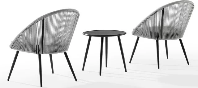 Nestled between the chairs is a perfectly sized steel slat top table. The Aspen chair set is sure to be a showstopper on your balcony or porch.