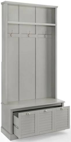 Hang your coat and hat on one of the three double-pronged hooks, then take a seat on the bench to remove your shoes at the end of the day. Once off, you can tuck your shoes in the pull-out storage drawer in the base and use the display shelf at the top for smaller items like keys and sunglasses. Whether you’re coming or going, the Ellison hall tree will keep all your everyday items close at hand.