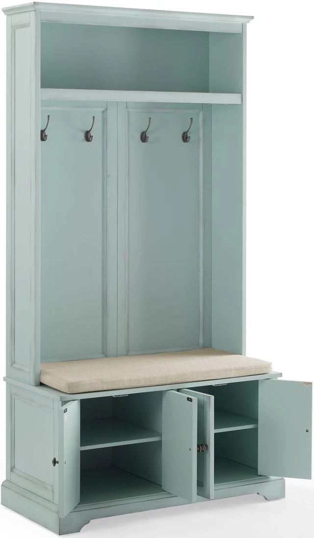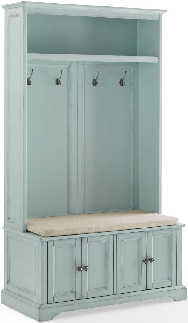 The open stationary shelf corrals smaller items while the four double prong hooks keep coats and hats accessible. Whether you are coming or going, the Holbrook hall tree keeps all your everyday items close at hand.