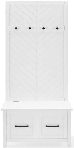 Complete with minimalist peg hardware for hanging coats and hats, plus a large lift-top storage bench for tucking away shoes, the Kayce hall tree keeps your foyer clutter-free.