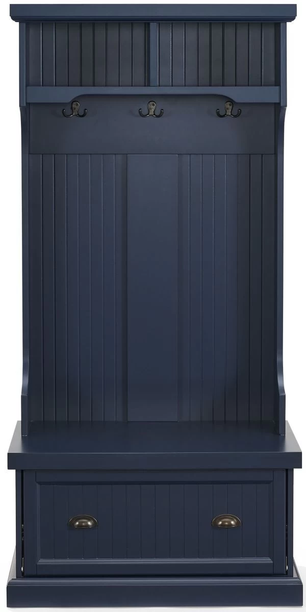 The three double prong hooks provide hanging storage for coats and book bags, while the two open shelves at the top can hold smaller items like your wallet and keys. Keep your home’s entrance clutter-free with the Shoreline hall tree.