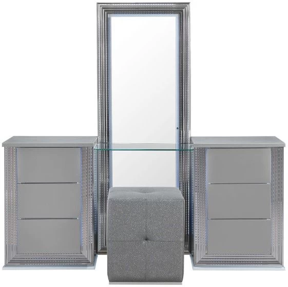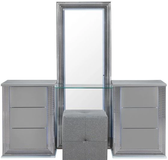 The real showstopper is the LED accents that add a touch of luxury and sophistication to the overall look. An available large matching vanity with stool makes this one of the most accommodating, complete solutions for your bedroom.