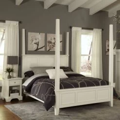 homestyles Bedford Queen Bed and Nightstand is constructed of hardwoods and engineered wood in a rich ebony finish. Bed Features include raised panels on the headboard and footboard. Item includes Queen headboard, footboard, and rails. Nightstand features include a storage drawer that measures 10.75 w 10.75 d 4h, and open storage area that measures 12w 14d 11.5 h.