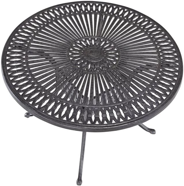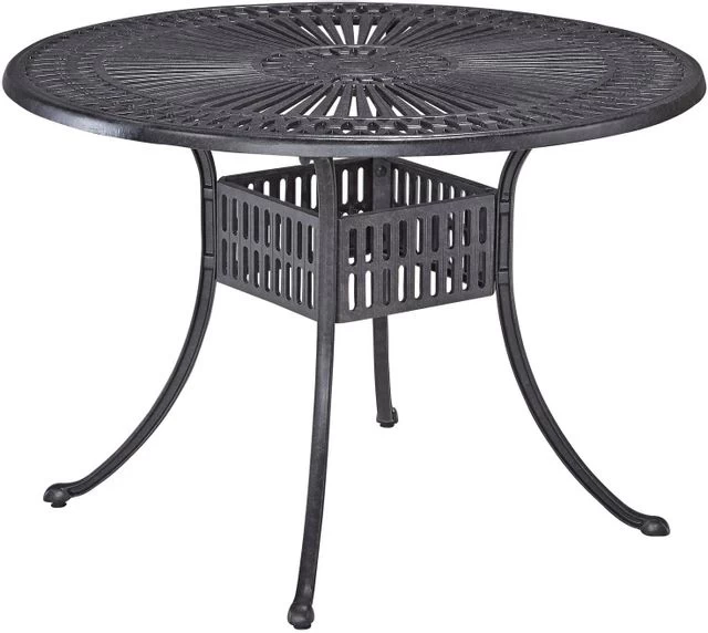 Create paradise in your own backyard. This Grenada Dining Table by homestyles has a cast aluminum frame and is UV-resistant, with a hand-applied, powder-coated finish that’s sealed with a clear coat. The maintenance-free table seats four comfortably. There is an umbrella hole, with a cap when not in use. Nylon glides keep the table firmly in place and the hardware is rust-proof stainless steel. Finish and measurements may vary. Assembly required. Delivered to your door by parcel service.