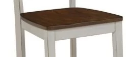 Solid hardwood frame has distressed white finish with sanded edges and distressed warm oak seat