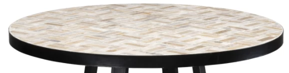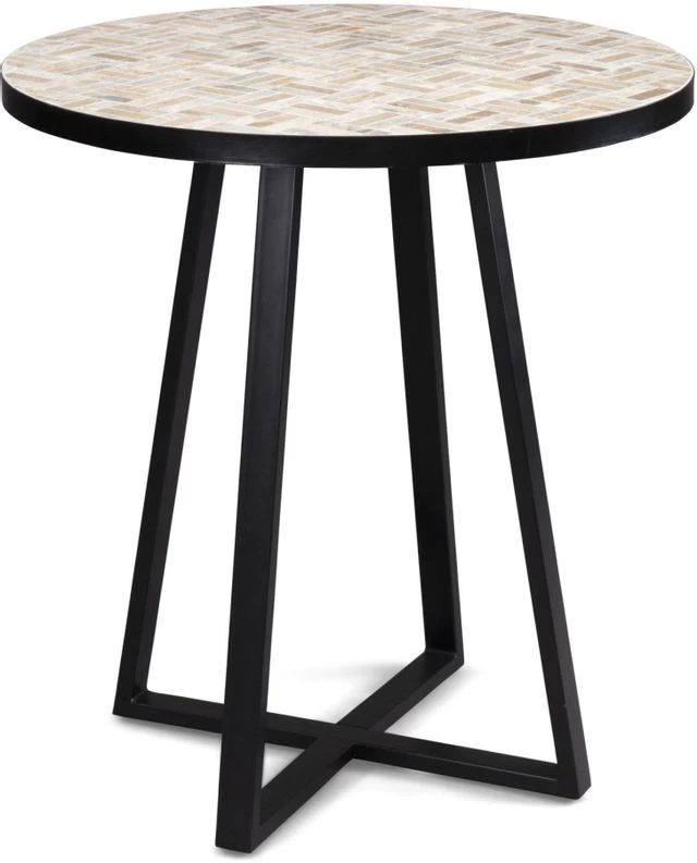 Whether catching up with friends or enjoying a warm breeze by yourself, this Panama bistro table is the perfect addition to any outdoor space. The marble top features brown and grey tiles in a contemporary chevron pattern. The powder-coated metal frame provides a sturdy foundation.