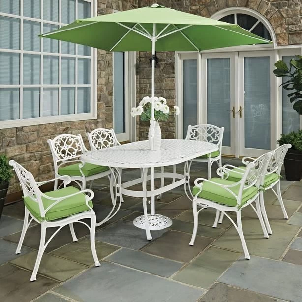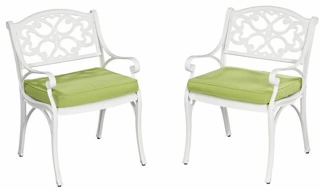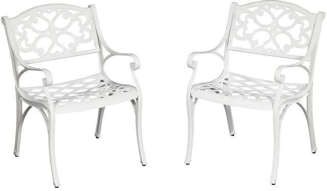 The difference between an average backyard and an open air sanctuary is found the classic comfort and traditional style that Sanibel delivers. This pair of arm chairs with seat cushions features a cast aluminum frame with a powder-coated finish and a clear coat that offers total protection from the elements. The seat design allows water to quickly drain through to prevent pooling or staining.