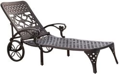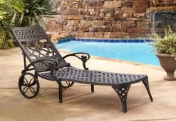 The difference between an average backyard and an open air sanctuary is found the classic comfort and traditional style that Sanibel delivers. This chaise lounge features a cast aluminum frame with a powder-coated finish and a clear coat that offers total protection from the elements. The seat and back allow water to quickly drain through to prevent pooling or staining. Add optional cushions to make this lounge even comfier.