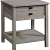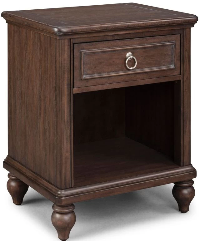 Rustic coastal design captures the warm and homey feel of a quant cottage by the sea. Crafted of hardwood solids and oak veneers over engineered wood, with a dark aged oak finish with aged white waxed looking hang-up, creating a look of Rustic coastal design captures the warm and homey feel of a quant cottage by the sea. Crafted of hardwood solids and oak veneers over engineered wood, with a dark aged oak finish with aged white waxed looking hang-up, creating a look of being weathering by the sea for years. Nightstands feature single drawer with nickel finished ring style drawer pull, and lower open storage area.