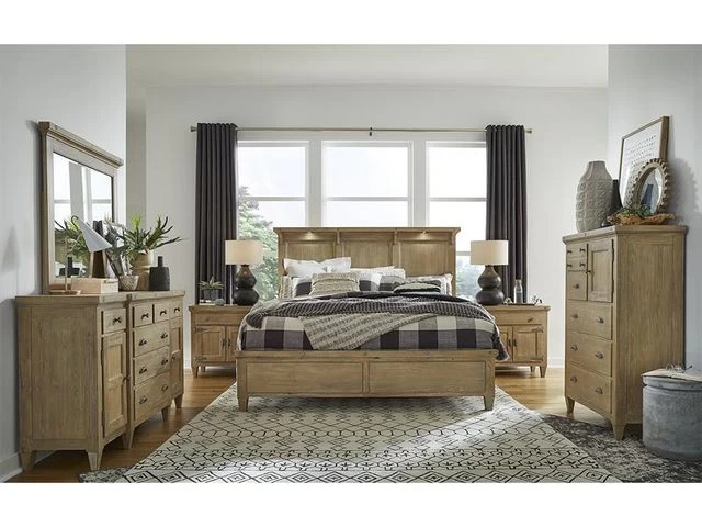 Magnussen Lynnfield Queen 3pc Bedroom Group Features Lighted Headboard with Uphlostered Footboard