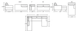 | Armless Chair w/Left Arm Ottoman | 39H 56.5W 40.5D |