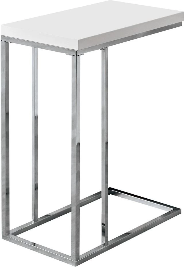 Elevate the modern tone of your living room, office space, family room or den with this stylish glossy white and chrome metal C end table.