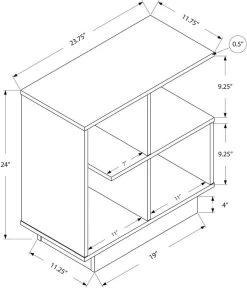 This contemporary and architecturally inspired side accent table combines modern style with storage options in one versatile piece. The rectangular tabletop is spacious enough to place your tablet, book or drink. The four open shelves at the bottom in various sizes offer plenty of storage for magazines, books, decorative objects or audiovisual components, all supported on a sturdy elevated base. A multi-functional accent table, bring it into the bedroom as a chic nightstand for all your essentials within easy reach. Finished on all sides in a smooth laminated and elegant white, the compact design of this end table is perfect for small spaces. Assembly is required.