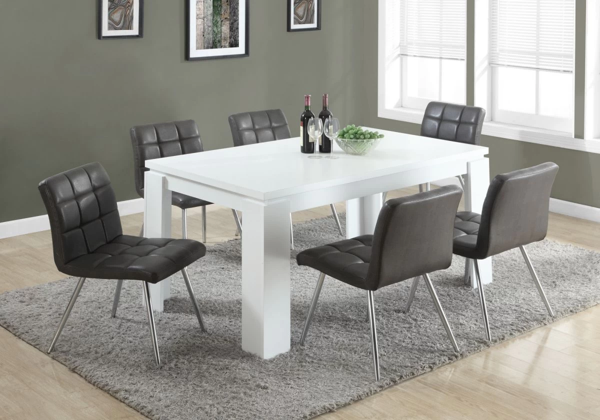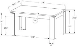 Looking for contemporary? You’re in the right place. This smooth white, thick-paneled kitchen table features a unique upscale surface to offer you the perfect unique style for your new place. The modern dining table also features thick, open block shaped legs to keep everything nice and sturdy. When it’s time to make a statement in your home, count on this kitchen table to do the trick in a casual or formal dining setting. Chairs sold separately.