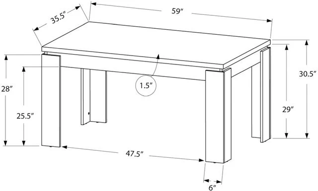 Dimensions: 59 Inch L x 36 Inch D x 31 Inch H