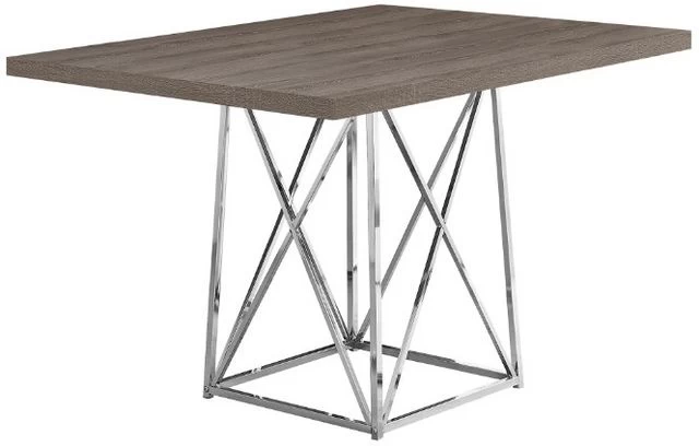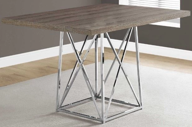 Stylish chrome metal legs have an x-shaped design, which adds a contemporary element to the wood dining table.