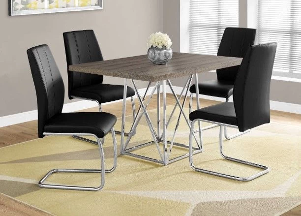 For your shiny tastes, the chrome metal legs give you that added elegance you need in your dining room. Chairs sold separately.