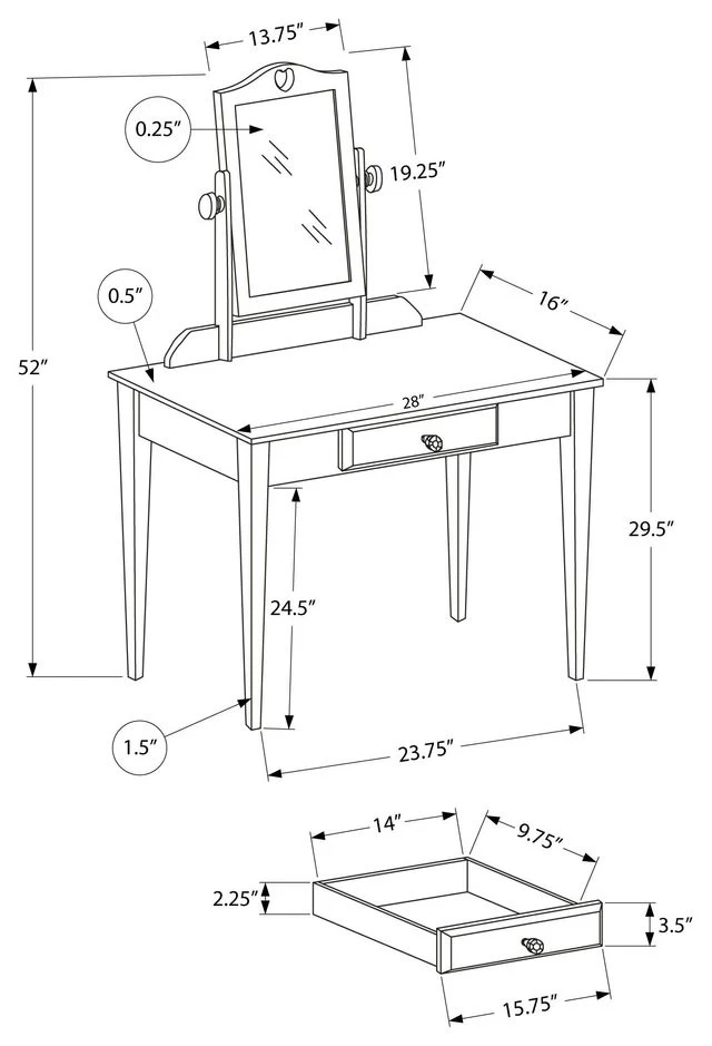 *Vanity table only. All other items not included. Color and saturation may vary due to lighting and monitor/phone screen settings.