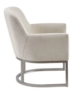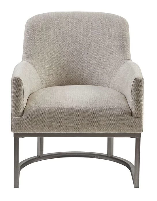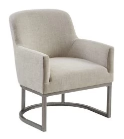 “Material:Solid wood and plywood frame, upholstered seat and back, metal legs Fabrication: 100% polyester Filling: Foam Leg Material:metal Arm Material:Solid wood and Plywood Wood Finish: Brushed silver metal”