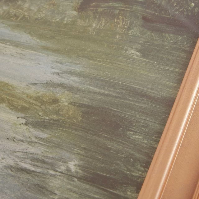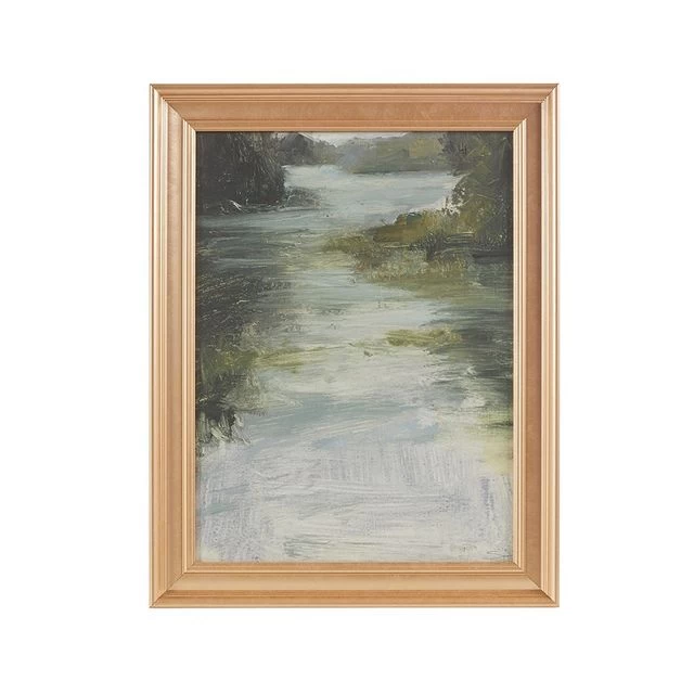 Printed landscape in glass frame.