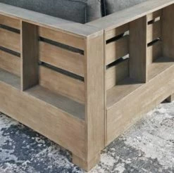 Solid acacia, Powder coat aluminum frame, Rope, 100% Polyester fabric, 80% PU Foam, 20% Poly fiber