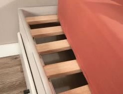 Contain your clutter and chaos – this twin bed with drawers features convenient under bed storage options with two large drawers that create an easy access space for you to stow away a variety of different items. Store your stacks of t-shirts and your collection of shoes, or your board games and an extra set of sheets and blankets in this twin storage bed. You can find a place to store it all! This mates bed accommodates a twin-sized mattress to give you a completed look, whether it is in your bedroom or down the hallway in the guest room. This twin bed with storage drawers adds cozy style and simplistic beauty no matter where it rests. Finished in Glacier Oak™ with tapered feet and chamfered edges, this mates bed will have you snoozing in style in no time.
