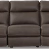 Double your pleasure with this cool and contemporary 3-piece sectional that distinguishes itself with dual fabric treatment. Wrapped in a feel-good herringbone weave upholstery outlined with pretty piping, the back and seat cushions provide the sumptuousness you crave. Beautified with contrast stitching, the faux leather on the frame adds a fashion-forward twist. Sloped flared armrests and abstract-patterned pillows perfect the aesthetic.