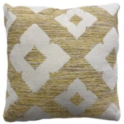 Woven geometric design in yellow, brown and cream.