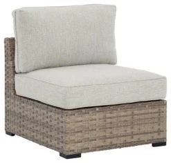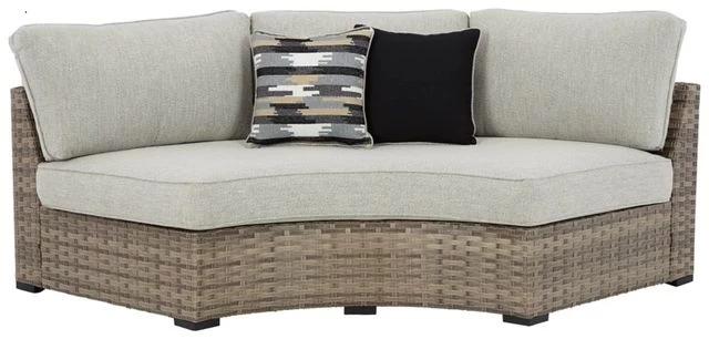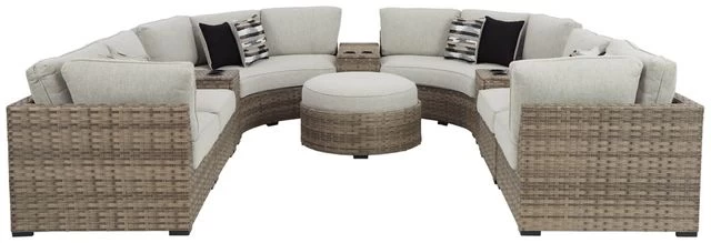 Includes 9 pieces: 2 curved cushioned loveseats, 3 consoles, set of 2 armless cushioned chairs and set of 2 corner cushioned chairs