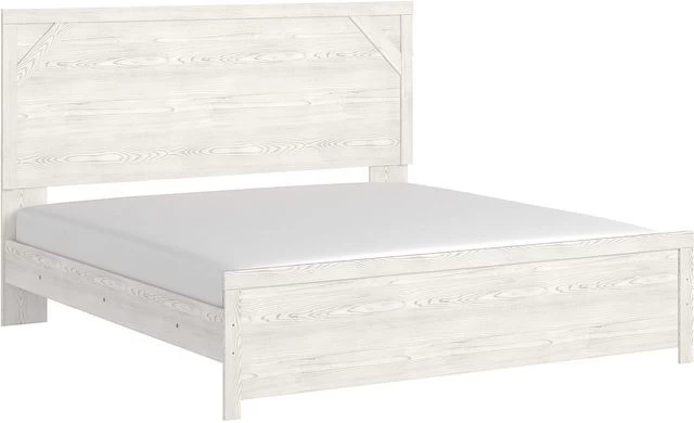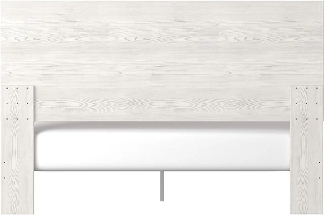 White rustic finish with replicated cedar grain accented with rustic gray planked replicated oak grain with authentic touch.