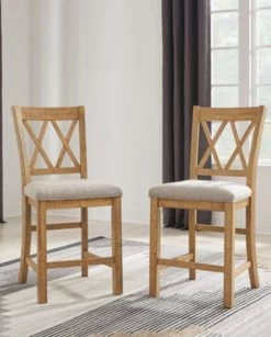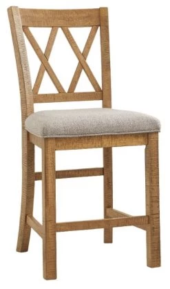 Casual look with its double X-back design and contrasting light gray upholstered seat cushion.