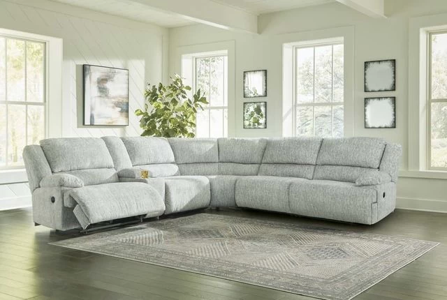 Includes 6 pieces: left-arm facing recliner, armless recliner, wedge, console with storage, armless chair, and right-arm facing recliner